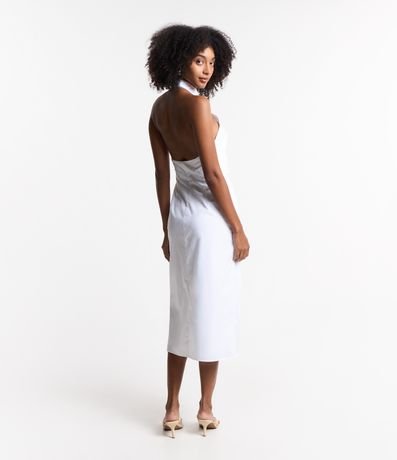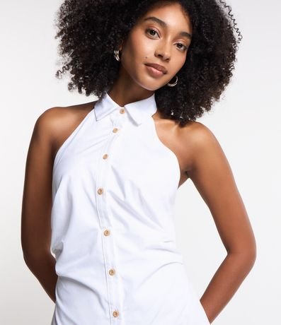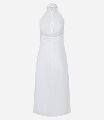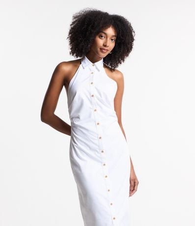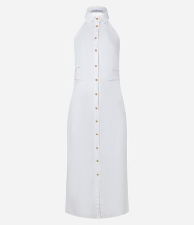Ref: Vestido feminino de comprimento midi, confeccionado em tricoline e com decote frente única. Sem estampa, possui abotoamento frontal total e costas abertas.