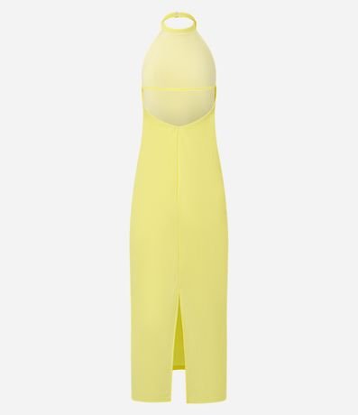 Ref: Vestido longo confeccionado em poliéster com frente única e modelagem evasê, trazendo elegância e conforto. Possui textura suave, detalhe de abertura nas costas e fenda frontal para maior movimento.