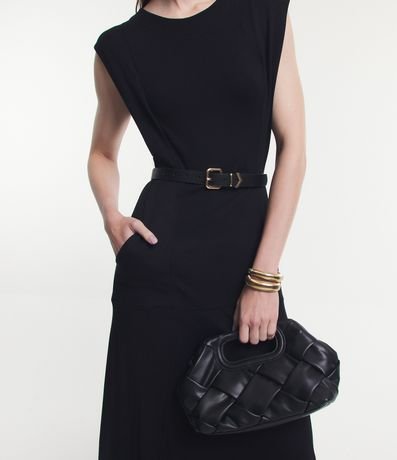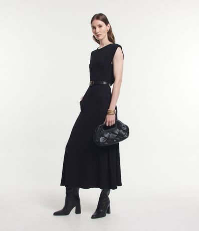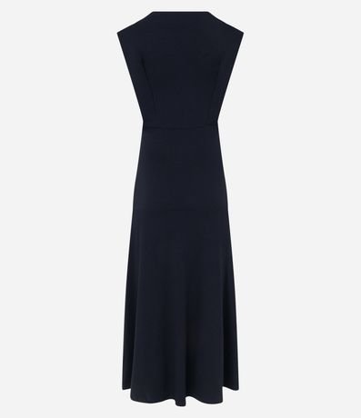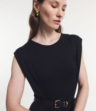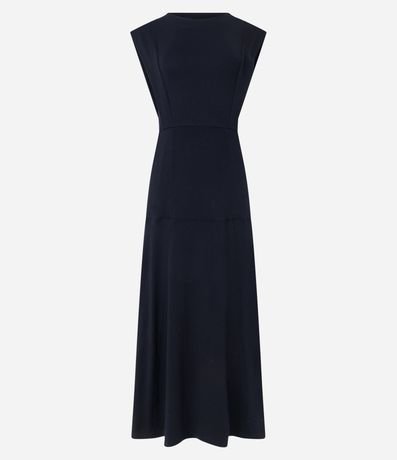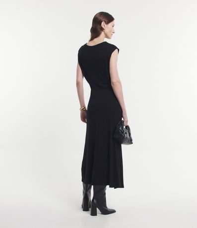 Vestido midi muscle tee feminino, confeccionado em viscose, com gola redonda, sem mangas e com recortes.