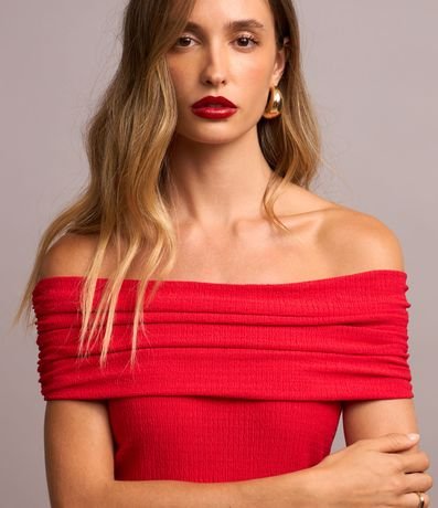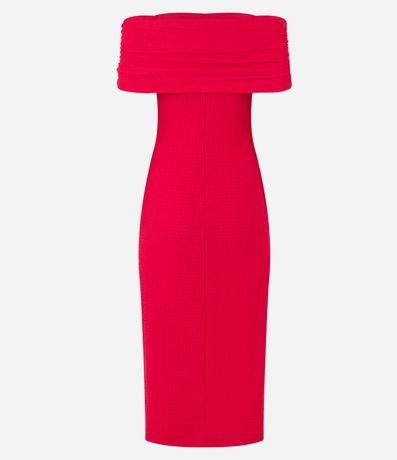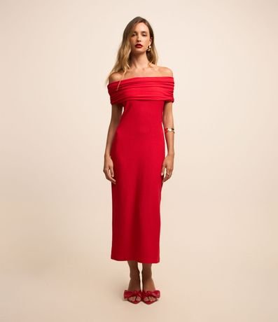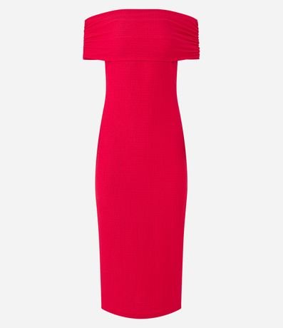 Ref: Vestido feminino modelo midi, com textura, ombro a ombro e decote reto.