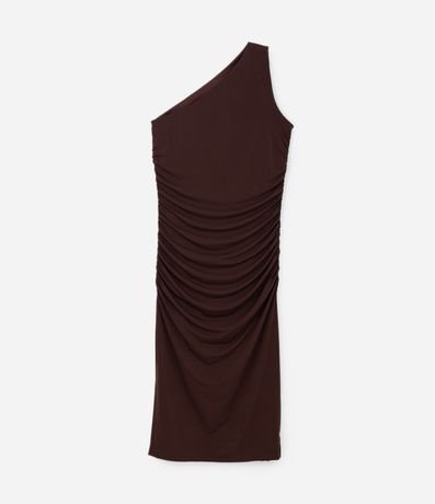 Vestido feminino Curve & Plus confeccionada em poliéster com elastano em melhores práticas ambientais. Peça no modelo midi com ombro único e detalhes franzidos na lateral.