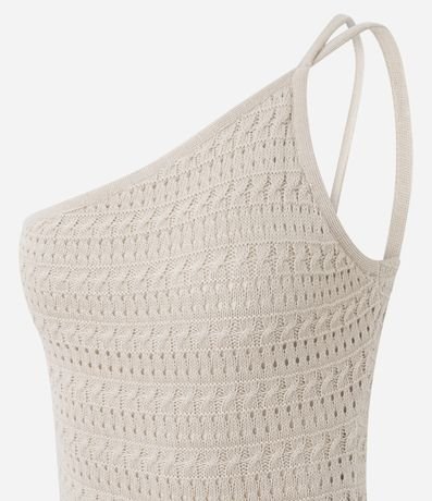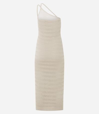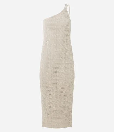 Vestido midi em tricô com modelagem reta e decote assimétrico de ombro único, trazendo um visual moderno e elegante. A peça possui textura vazada que valoriza o caimento e garante conforto. Ideal para produções sofisticadas e versáteis para diferentes ocasiões.