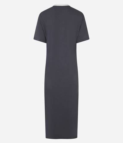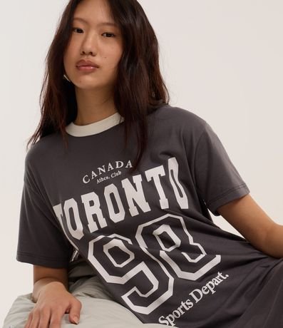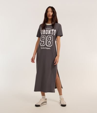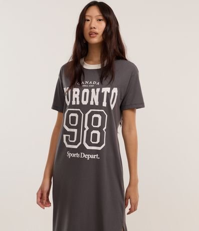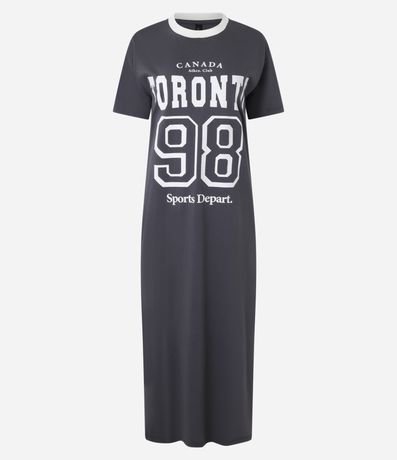 Ref: Vestido midi, t-shirt, reto com manga curta, confeccionado em algodão bci e estampa college, Toronto.