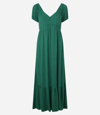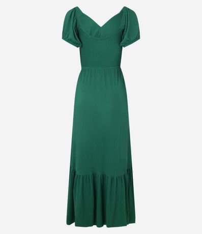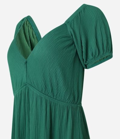 Ref: Vestido midi com manga curta, decote coração, texturizado, confeccionado em viscose mais sustentável e sem estampa.