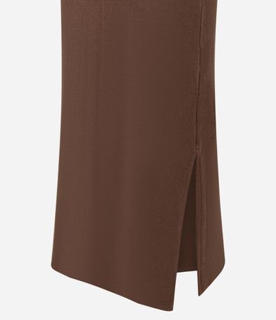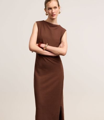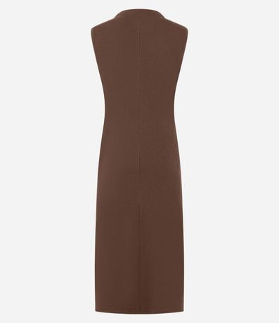 Ref: Vestido feminino de modelo midi, texturizado, confeccionado em algodão, com gola alta e sem mangas.