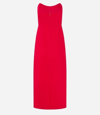 Vestido midi sem alças confeccionado em bengaline com decote coração diferenciado, pences no busto e fenda na perna.