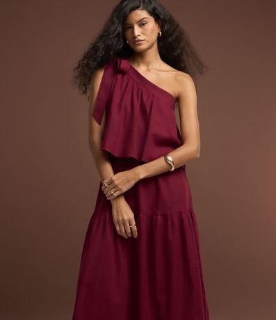 Ref: Vestido feminino midi um ombro só com babados. Peça confeccionada com viscose mais sustentável.