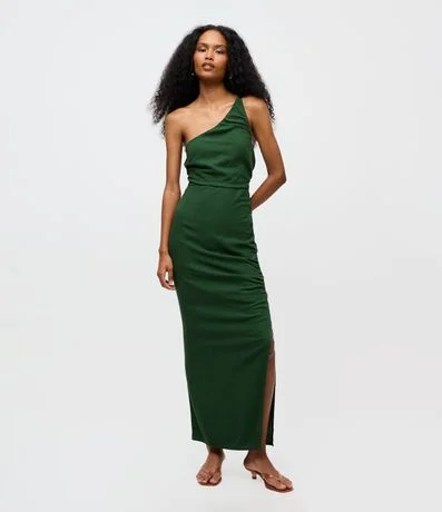 Ref: Vestido feminino confeccionado em viscolinho de viscose mais sustentável, sem mangas, com modelagem ajustada e comprimento midi. O design de um ombro só traz sofisticação ao visual, enquanto a fenda lateral adiciona leveza e movimento à silhueta. A peça apresenta acabamento liso e caimento elegante, sendo ideal para composições modernas que transitam com facilidade entre ocasiões casuais e produções mais refinadas.