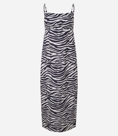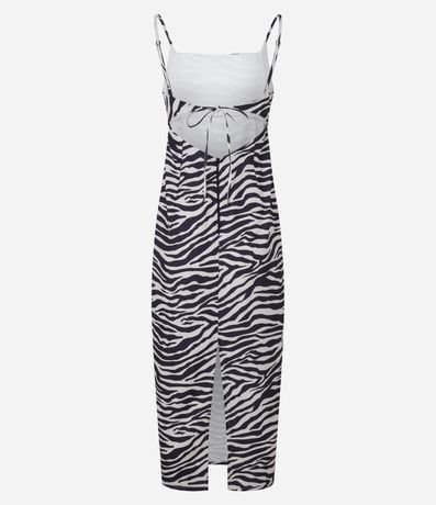 Ref: Vestido feminino de modelo new midi, com alças finas, amarração nas costas, fenda e estampa animal print de zebra.