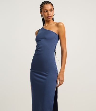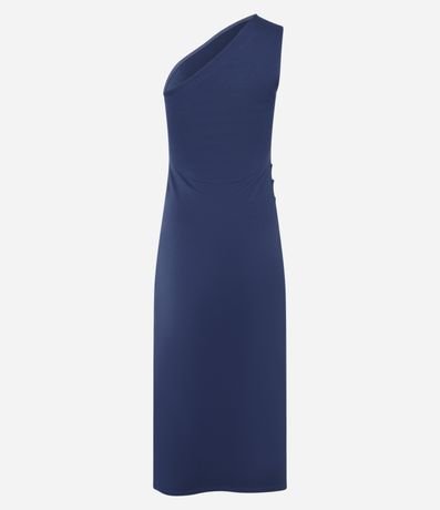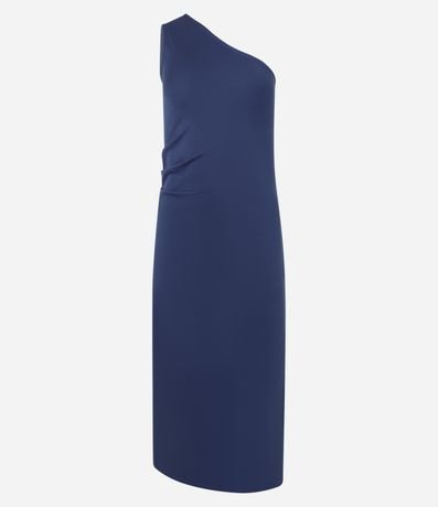Ref: Vestido ajustado confeccionado em malha ponto roma, com comprimento new midi e decote de ombro único. Sem estampa, possui detalhe de drapeado lateral.