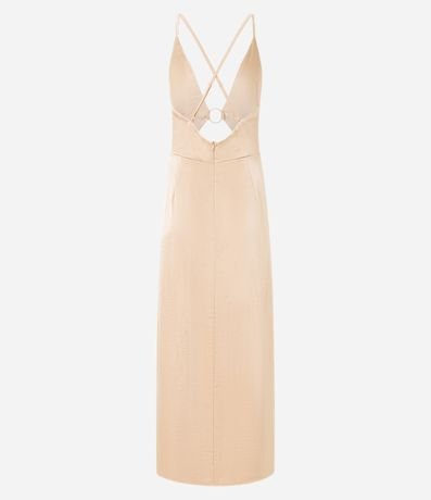 Vestido New Midi Ajustado em Cetim com Recorte e Argola no Busto