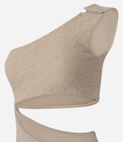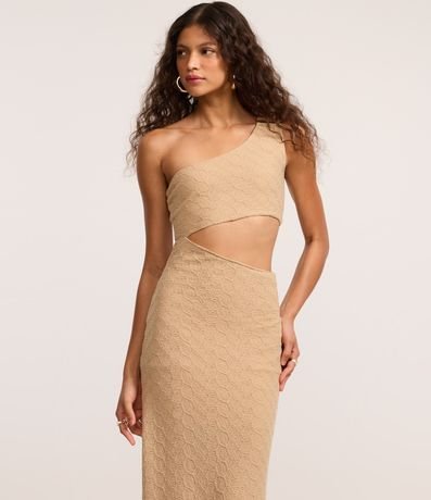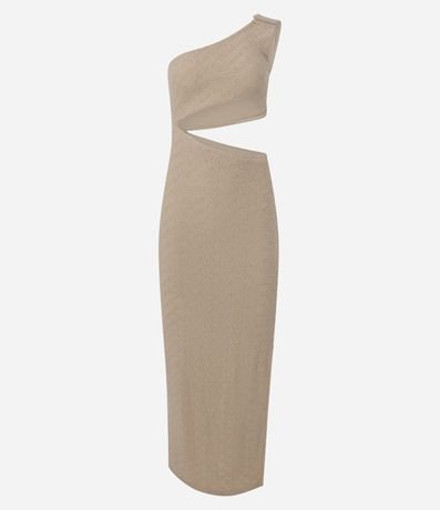 Ref: Vestido feminino new midi com textura, ombro único com aviamento e recortes.