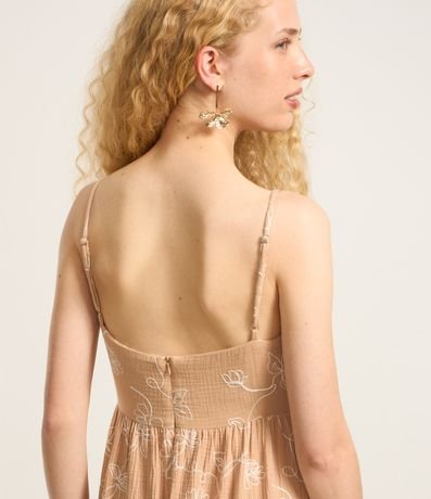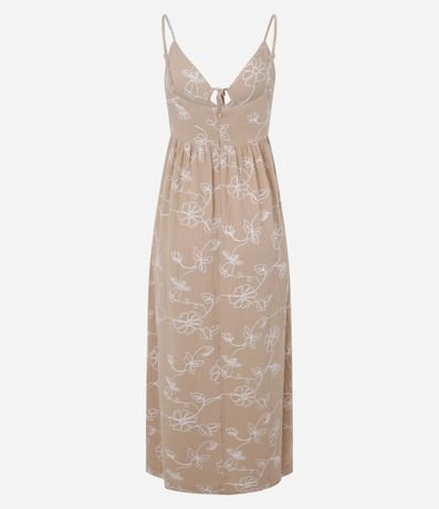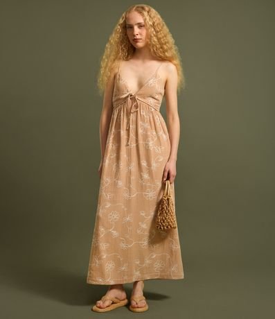 Ref: Vestido new midi, evasê com alcinha fina regulável, confeccionado em algodão bci mais sustentável e amarração no busto.