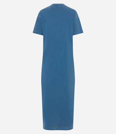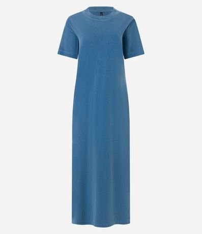 Ref: Vestido de comprimento new midi, confeccionado em malha de algodão mais responsável, com gola redonda e mangas curtas. Possui detalhe de fenda lateral.