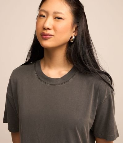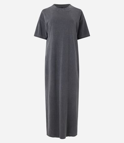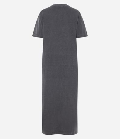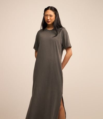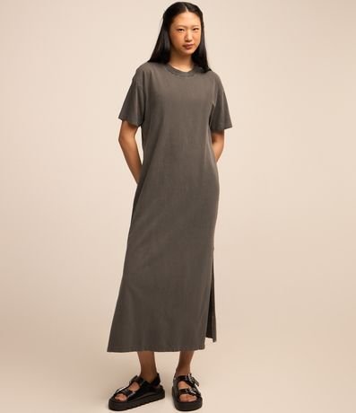 Vestido de comprimento new midi, confeccionado em malha de algodão mais responsável, com gola redonda e mangas curtas. Possui detalhe de fenda lateral.