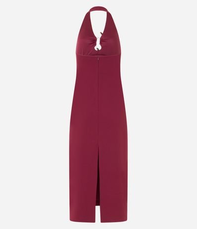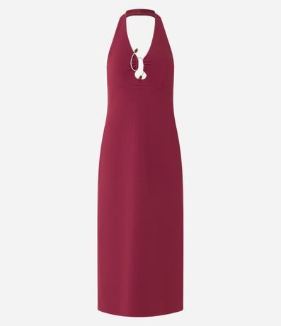 Vestido New Midi em Crepe com Pedras no Aviamento Metalizado