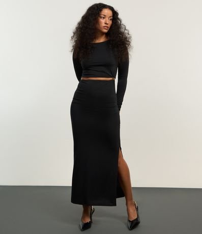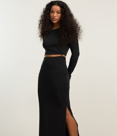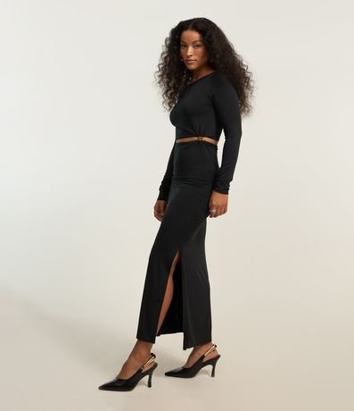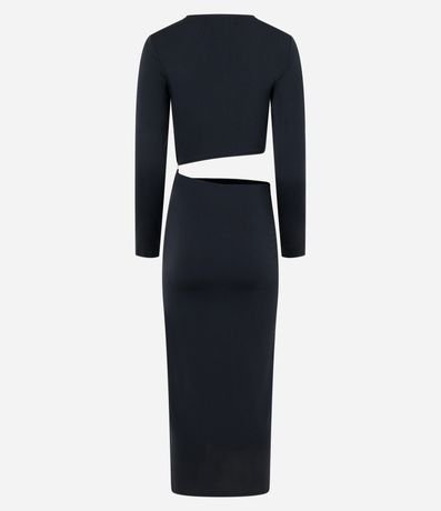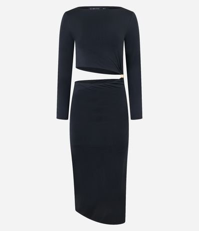 Vestido new midi com manga longa, confeccionada em jersey com recorte vazado na cintura e aviamento na lateral.