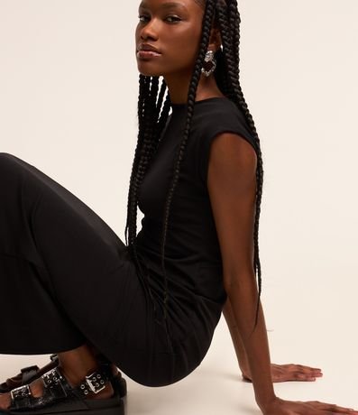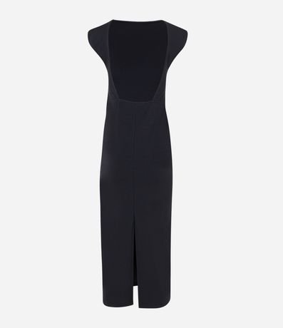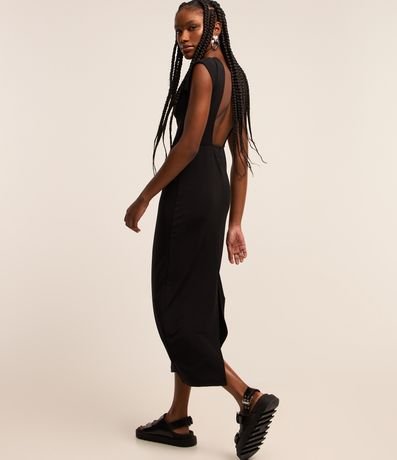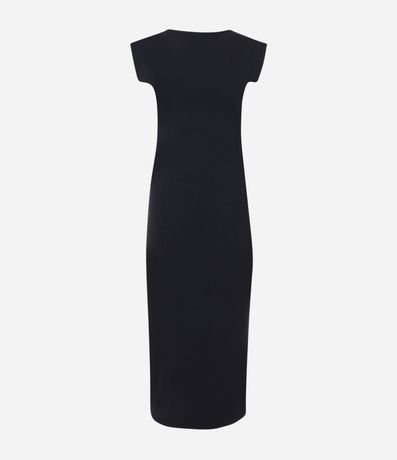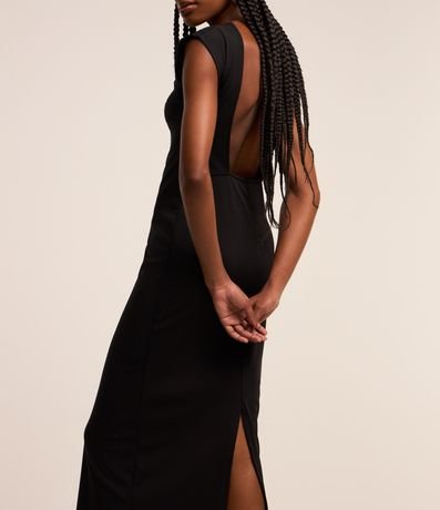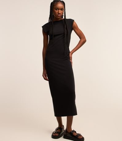 Ref: Vestido new midi confeccionado em malha, com gola redonda e mangas curtas. Sem estampa, possui decote U e fenda nas costas.