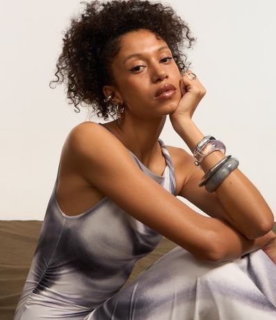 Vestido New Midi em Microfibra com Estampa Abstrata
