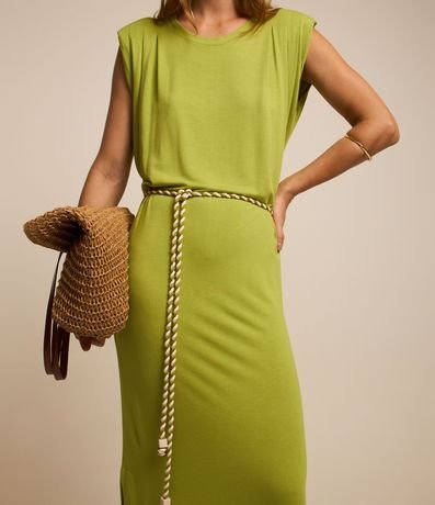 Vestido New Midi em Moletinho com Ombreira e Cinto de Cordão