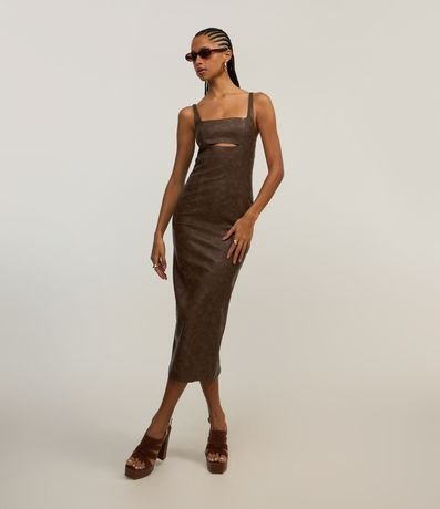 Ref: Vestido new midi com alça regulável. Possui fechamento por zíper e fenda na parte de trás.