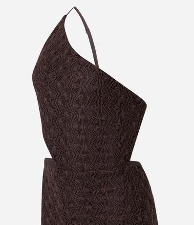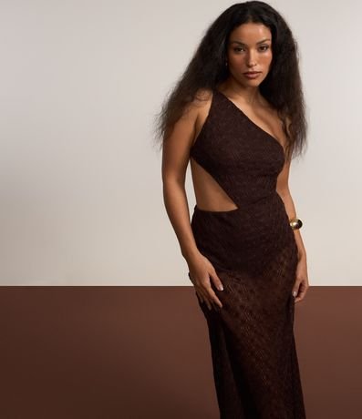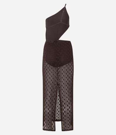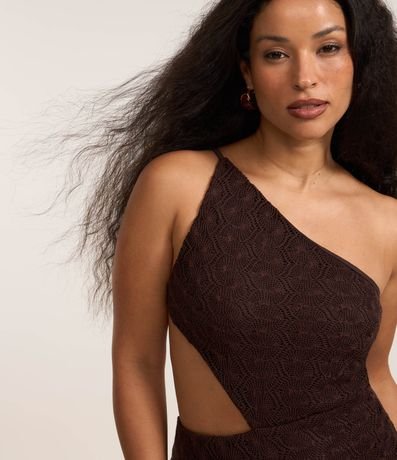 Vestido New Midi em Renda com Ombro Só e Sobreposição