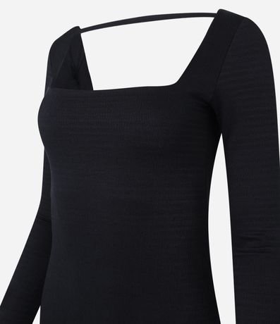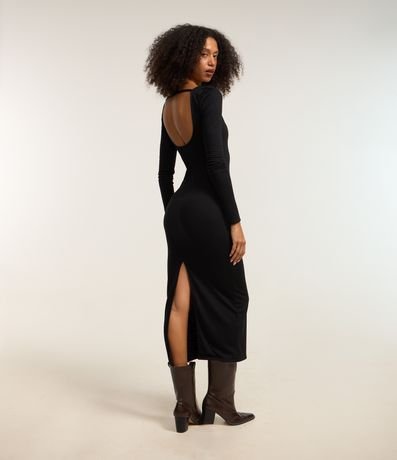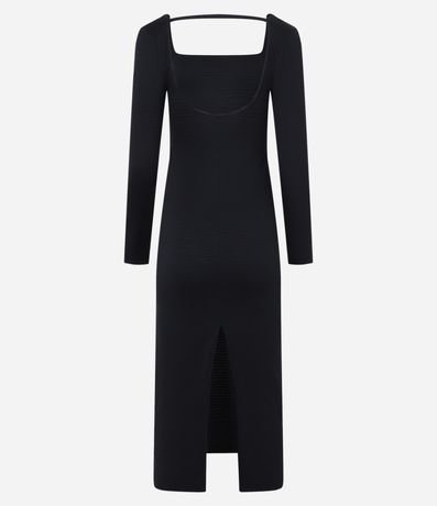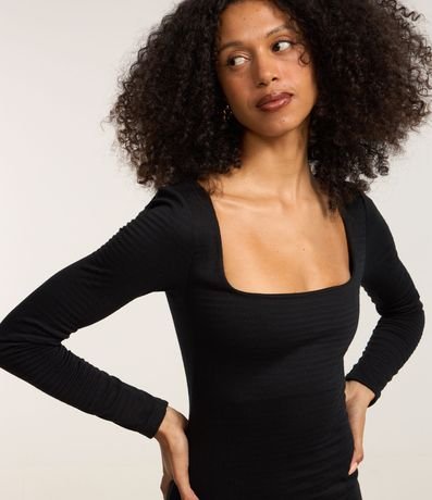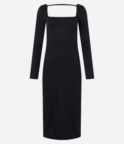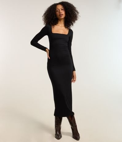 Ref: Vestido new midi com manga longa, justo com decote quadrado, confeccionado em ribana com viscose certificada e textura canelada.