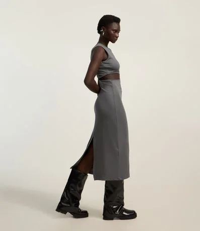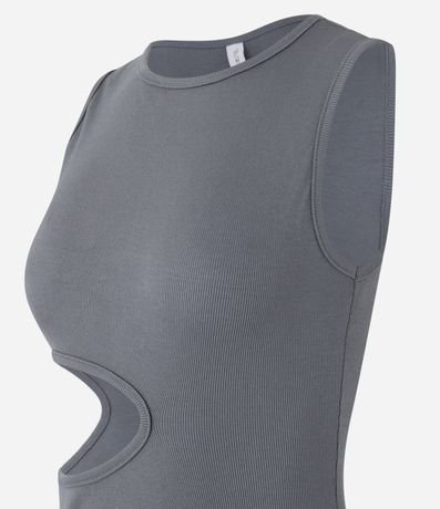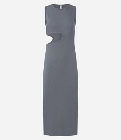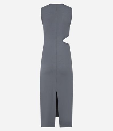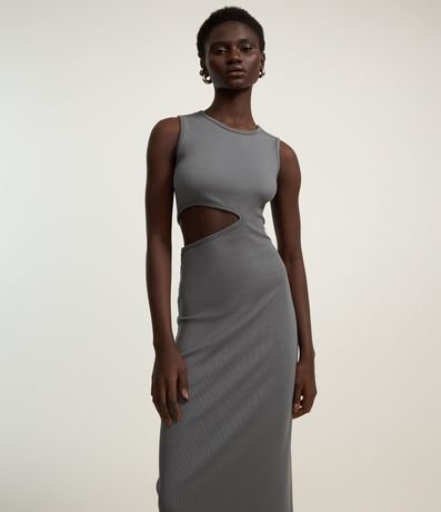 Vestido new midi confeccionado em ribana de viscose mais sustentável. A peça sem mangas tem gola redonda, recorte vazado lateral e fenda na barra traseira.