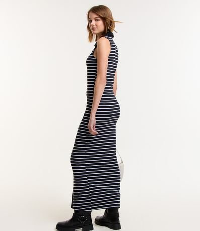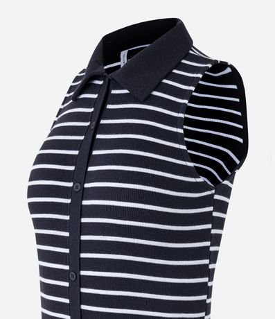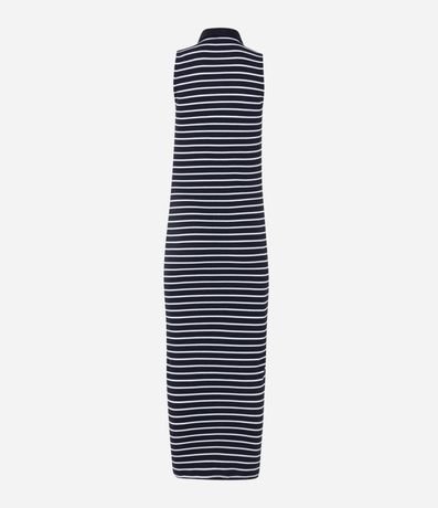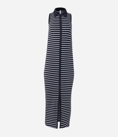 Ref: Vestido new midi, sem manga com golinha polo contrastante, botões frontais, listrado e com fenda na parte da frente.