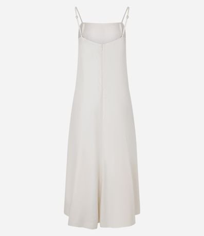 Vestido new midi, evasê com alcinha fina rabo de rato, vira no decote, confeccionado em sarja com viscose certificada e zíper nas costas.
