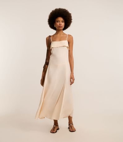 Vestido New Midi em Sarja com Alça Rabo de Rato