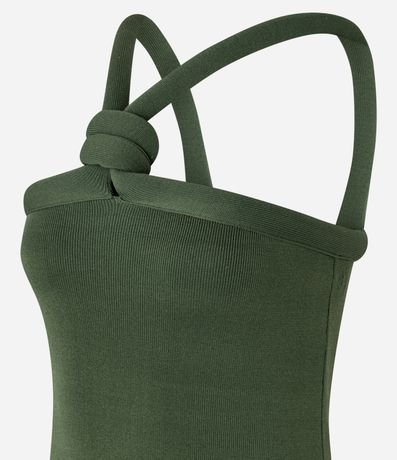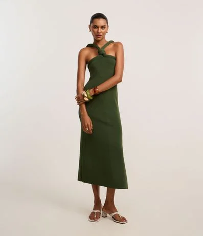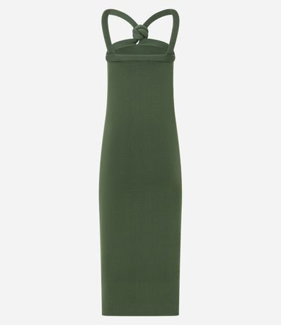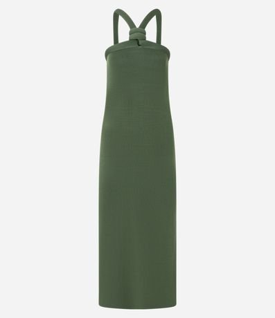 Ref: Vestido new midi, sem mangas, confeccionado em tricô, com alças cruzados com nós.