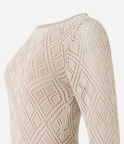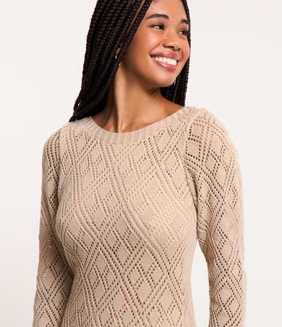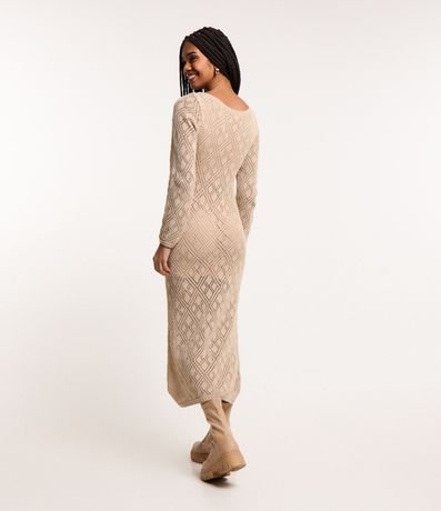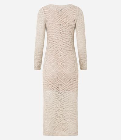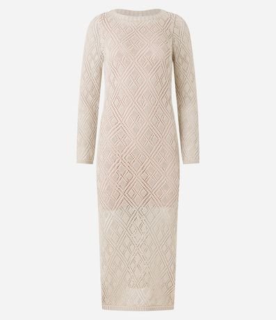 Ref: Vestido new midi, manga longa, decote canoa, confeccionado em tricô leve e com ponto losango.