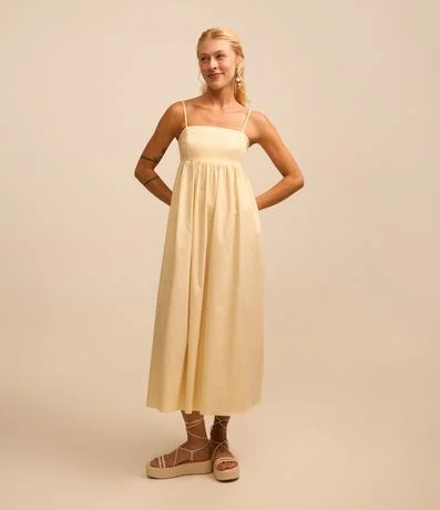 Ref: Vestido new midi com alcinhas finas, decote quadrado, lastex nas costas e confeccionado em tricoline.