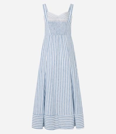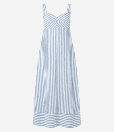 Vestido new midi com alças largas, confeccionado em tricoline, lastex nas costas e com listras.