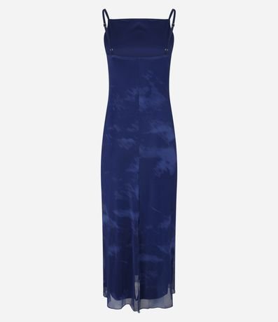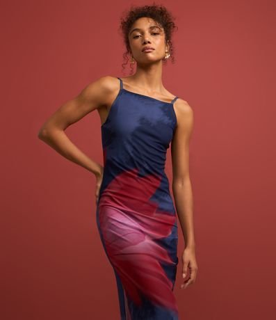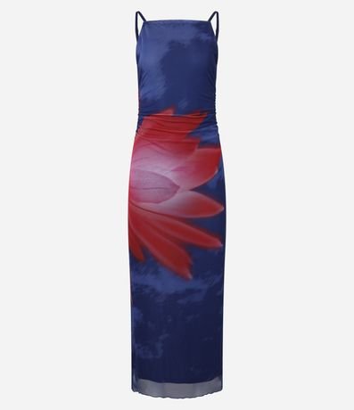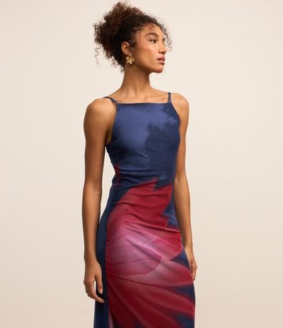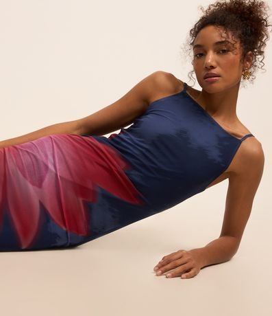 Ref: Vestido new midi com alcinhas finas, confeccionado em tule, forradinho e com estampa flor de lótus.
