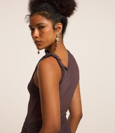 Ref: Vestido de modelo new midi, com decote assimétrico, sem manga e com alça torcida. Peça confeccionada em tule com forro curto.