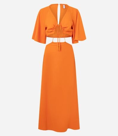 Vestido New Midi em Viscolinho com Recortes e Amarração