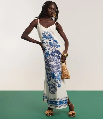 Ref: Vestido new midi reto, confeccionado em viscose certificada mais sustentável e estampa floral.
