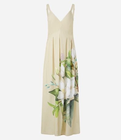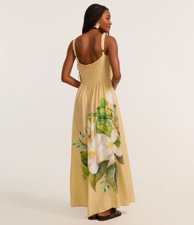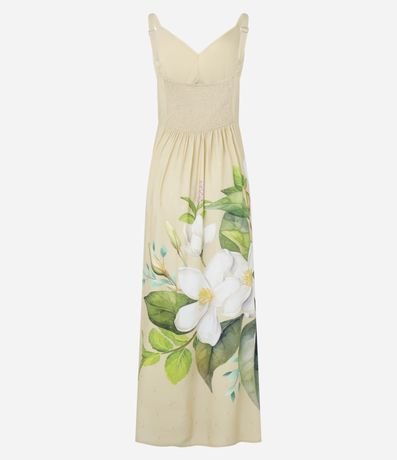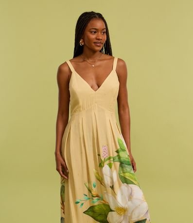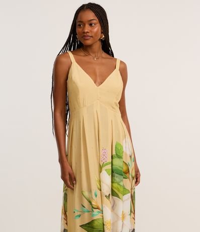 Ref: Vestido new midi com alça larga, confeccionado em viscose certificada, lastex nas costas e estampa floral na lateral.
