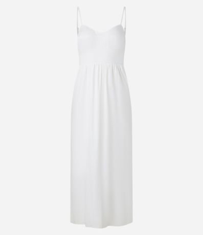 Vestido New Midi em Viscose com Linho e Lastex nas Costas