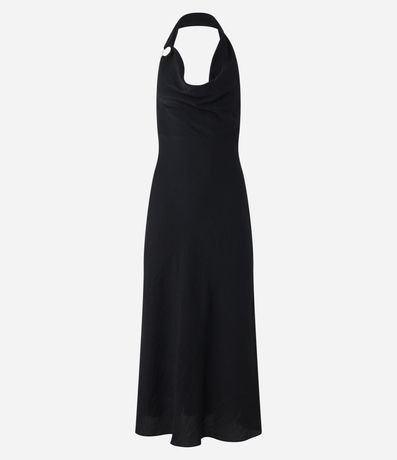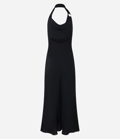 Vestido new midi frente única confeccionado em cetim de viscose mais sustentável e poliamida com decote degagê, alças assimétricas sendo uma delas mais fina com argola de metal diferenciada e costas abertas. Conta com design mais ajustado ao corpo.