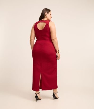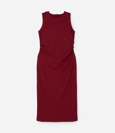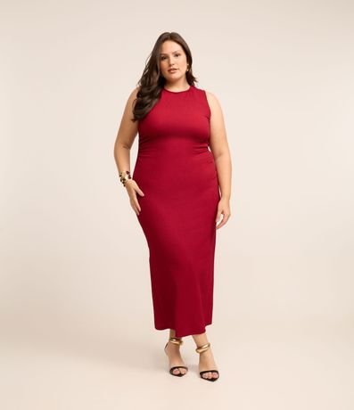 Ref: Vestido feminino curve & plus size sem manga, com gola redonda, franzido lateral. Seus detalhes nas costas de abertura