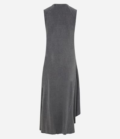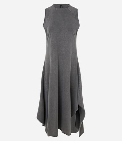 Ref: Vestido new midi, sem manga com cava raglan, confeccionado em aldão bci mais sustentável, efeito marmorizado e pontas na barra.