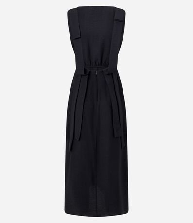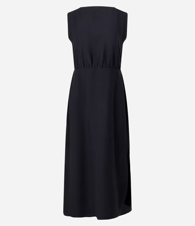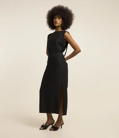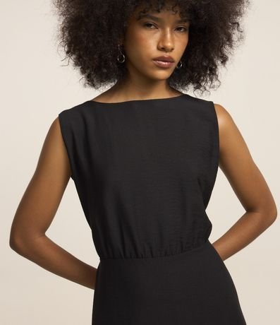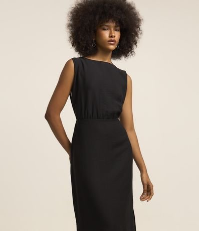 Ref: Vestido new midi sem mangas em crepe com costas abertas e fechamento traseiro por zíper.