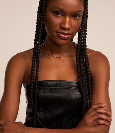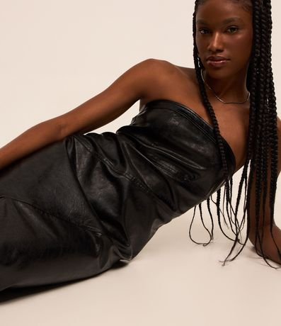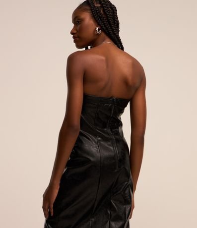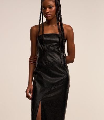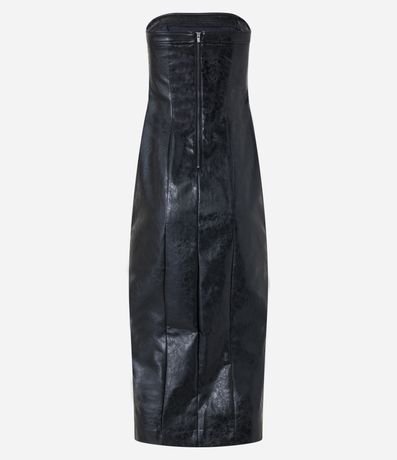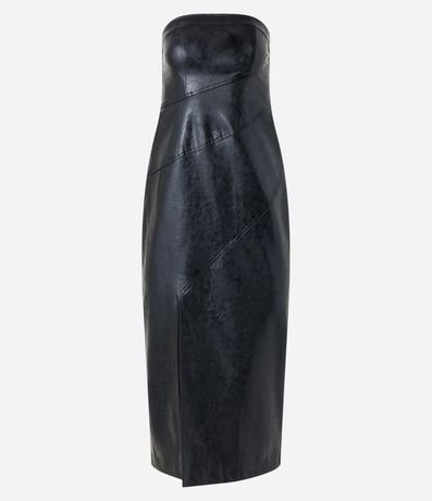 Vestido New Midi Tomara que Caia em PU com Recortes e Fenda