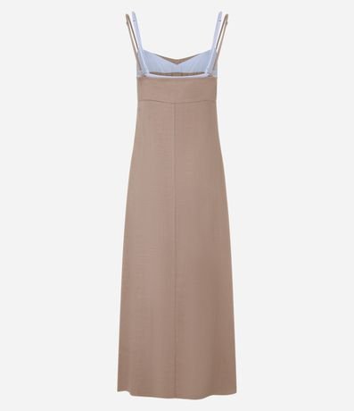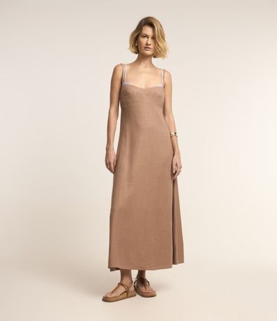Ref: Vestido plano sem manga em viscolinho com decote coração e detalhes contrastantes no busto.