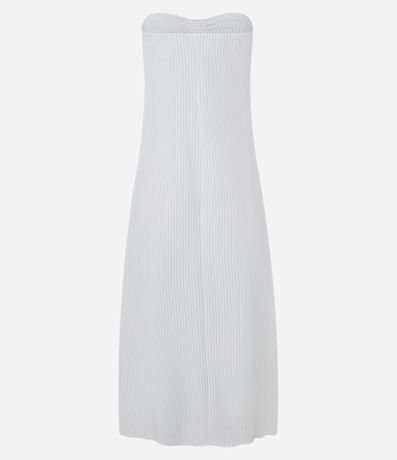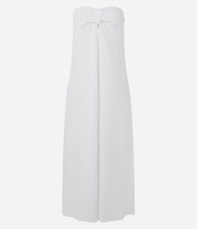 Ref: Vestido feminino plano tomara que caia de alfaiataria com estampa de listras e nó frontal no busto.