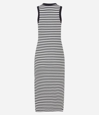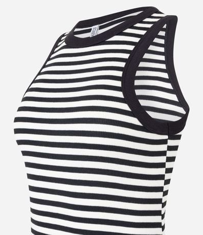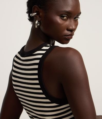 Vestido regata, de comprimento midi, confeccionado em malha ribana e com padronagem listrada.