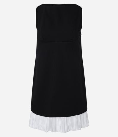 Ref: Vestido reto com decote tomara que caia, confeccionado em viscose mais sustentável e barra sobreposta plissada.